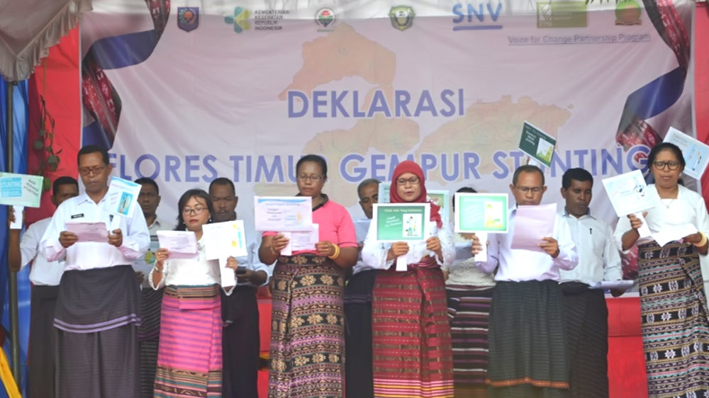 Untuk itu, Pemerintah Kabupaten Flores Timur (Flotim) melalui Forum Pangan dan Gizi (Foranzi) Flotim, bekerja sama dengan Yayasan Pengkajian dan Pengembangan Sosial (YPPS) Flotim dan Stichting Nederlandse Vrijwilligers (SNV) menggelar Deklarasi Flores Timur Gempur Stunting. Kegiatan ini dilaksanakan di Lapangan Bola Kaki Bintang Timur Lebao, Larantuka, Jumat (16/11/2018).