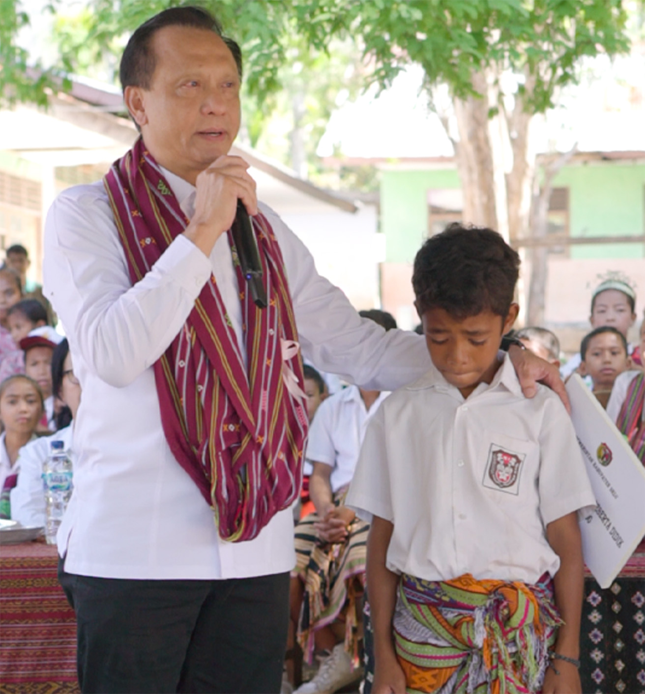 Tangan mungil Dinto bergetar saat menerima pemberian beasiswa dari dr. Agus Taolin. Papan bertuliskan “Bantuan Biaya Personil Peserta Didik Rp1.200.000,-” membuatnya tak dapat menahan diri. Tertunduk pilu, siswa SDI Buitae itu sesegukan. Ia tak sempat melirik atau bahkan mengeja setiap kata di tulisan itu, tapi air matanya seolah mewakili perasaannya, bahwa ternyata masih ada “ayah” yang peduli pada dirinya.