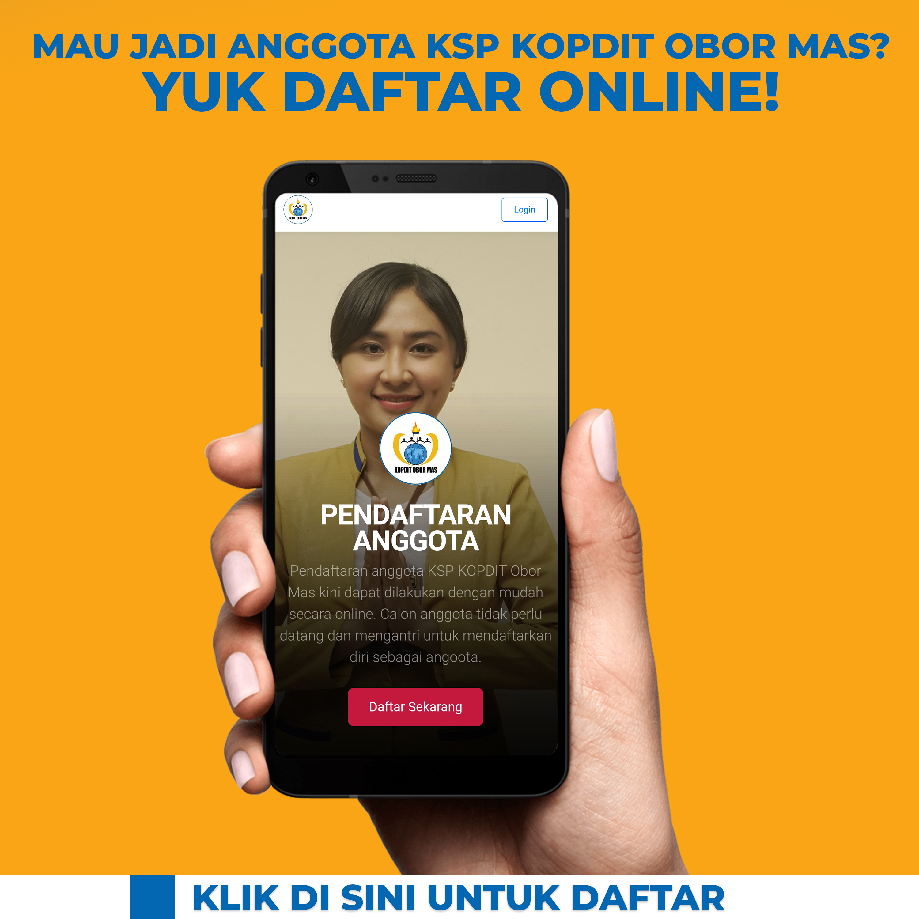 Untuk diketahui, pendaftaran menjadi anggota KSP Kopdit Obor Mas dapat dilakukan melalui dua cara yakni, offline dan juga online. Secara offline calon anggota dapat mendaftarkan diri dengan cara mendatangi kantor cabang terdekat. Sementara secara online, calon anggota dapat mendaftarkan diri melalui website kspkopditobormas.co (*/)