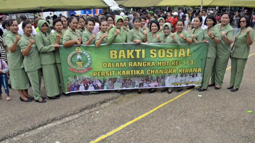 “Bakti Sosial berupa pasar murah, donor darah dan pengobatan gratis ini dalam rangka memperingati HUT ke-73 Persit Kartika Chandra Kirana dan HUT ke-21 BUMN dilaksanakan secara serentak. Selain untuk menjalin silaturahmi, ini juga merupakan salah satu bentuk kepedulian kita bersama kepada masyarakat NTT dalam mengatasi kesulitan rakyat dan memberikan pelayanan kesehatan,” jelas Ibu Ketua Persit KCK Koorcab Rem 161.