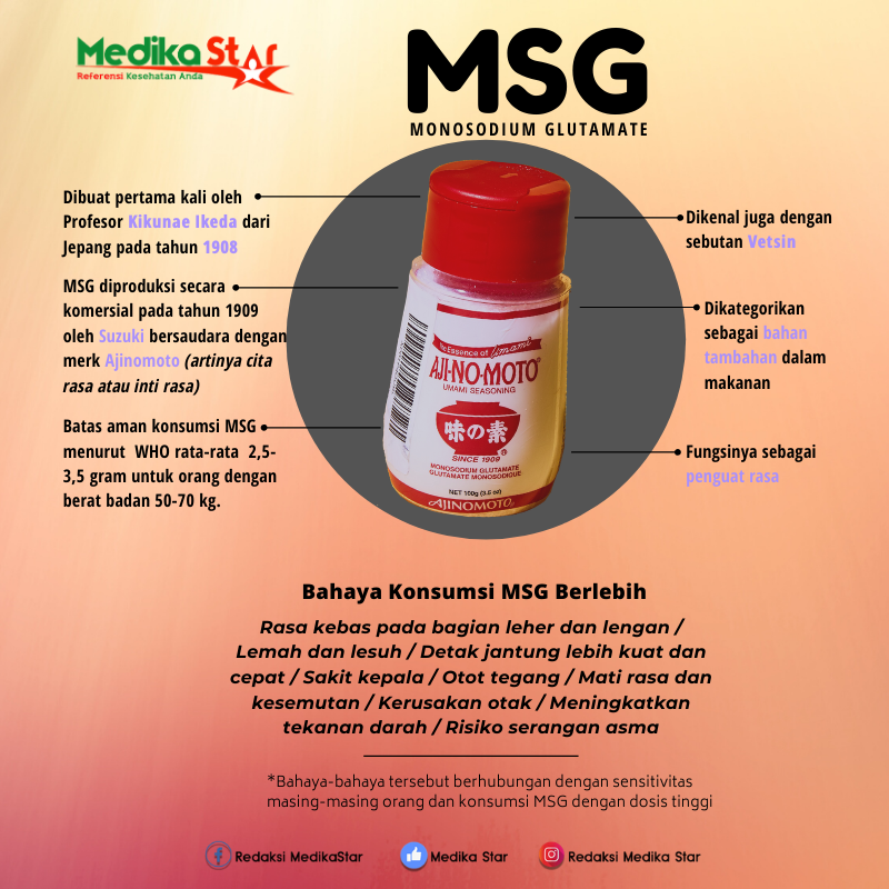 medikastar.id – Istilah “generasi micin” sangat terkenal dalam beberapa waktu terakhir. Istilah tersebut menggambarkan kondisi generasi jaman sekarang yang selalu terpapar micin atau MSG. MSG merupakan singkatan dari Monosodium Glutamate. Mengonsumsi MSG dinilai akan mendatangkan berbagai macam dampak negatif bagi otak dan tubuh.
