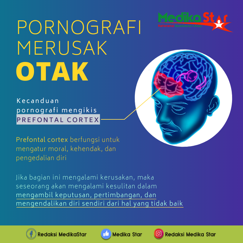 Pornografi juga berhubungan dengan mengikisnya prefontal cortex. Prefontal cortex merupakan area dalam otak yang berfungsi untuk mengatur moral, kehendak, dan pengedalian diri. Jika bagian ini mengalami kerusakan, maka seseorang akan mengalami kesulitan dalam mengambil keputusan, pertimbangan, dan mengendalikan diri sendiri dari hal yang tidak baik.