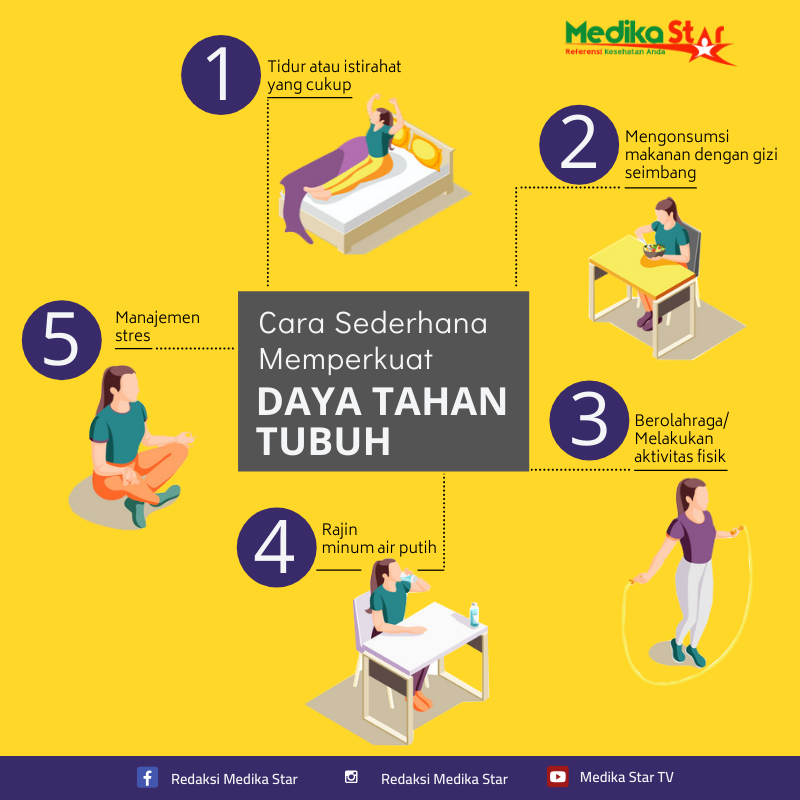 Virus corona dapat menginfeksi siapa saja tanpa terkecuali. Untuk melawan penyebarannya, masyarakat harus tetap menjalankan setiap arahan kesehatan yang diberikan dengan taat. Salah satunya adalah menjaga daya tahan tubuh agar tetap kuat. Daya tahan tubuh yang kuat diperlukan untuk mencegah dan melawan virus atau penyebab penyakit lain yang hendak membuat tubuh sakit.
