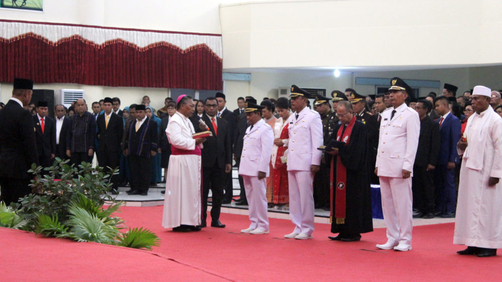 Dilantik Jadi Bupati SBD, dr. Kornelius Kodi Mete Didampingi Uskup Waitabula