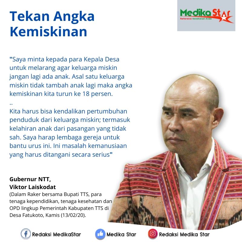 Menurut Viktor, para tenaga medis tidak boleh kalah dengan dukun beranak dan tim doa. “Karena itu, saya minta kepada para Kepala Desa (kades) untuk melarang agar keluarga miskin jangan lagi ada anak. Asal satu keluarga miskin tidak tambah anak lagi maka angka kemiskinan kita turun ke 18 persen. Saya mau dimarahi oleh siapapun, saya tidak repot,” tegas Viktor.