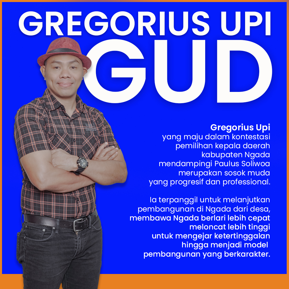 Sosok Gregorius Upi yang maju dalam kontestasi pemilihan kepala daerah kabupaten Ngada mendampingi Paulus Soliwoa merupakan sosok muda yang progresif dan professional. Ia terpanggil untuk terus melanjutkan pembangunan di Ngada dari desa.