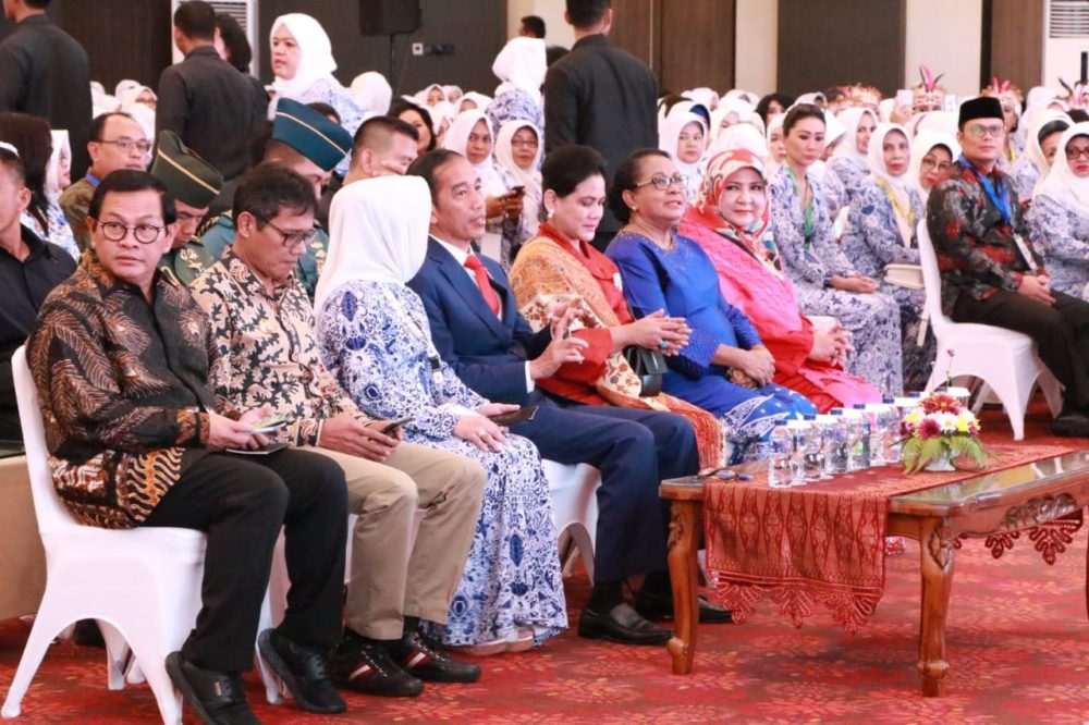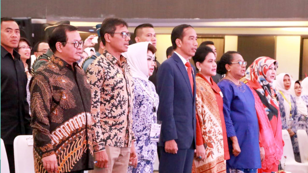 Presiden Republik Indonesia, Joko Widodo (Jokowi) membuka acara Rapat Kerja Nasional Ikatan Wanita Pengusaha Indonesia (Rakernas IWAPI) ke-28 di Kota Padang, Sumatera Barat, Senin (08/10/18). Dalam acara tersebut Jokowi didampingi oleh Menteri Pemberdayaan Perempuan dan Perlindungan Anak, Yohana Yembise.