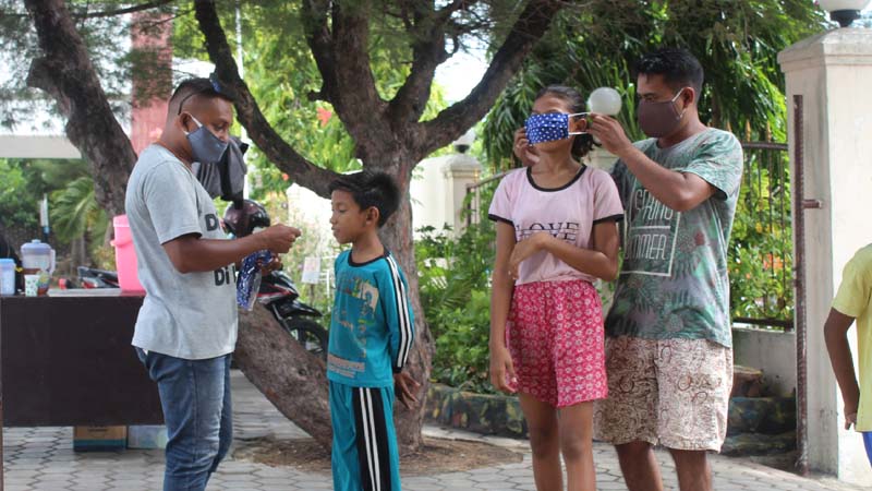 Siang itu, Rabu (20/5), para pemuda GMIT yang dikoordinasi oleh David Natun, nampak bersemangat mengarahkan orang-orang yang hendak mengambil nasi bungkus untuk menjaga jarak aman. Ada tukang ojek online, juru parkir, dan supir dan kondektur angkutan kota, dan beberapa anak yang antre.