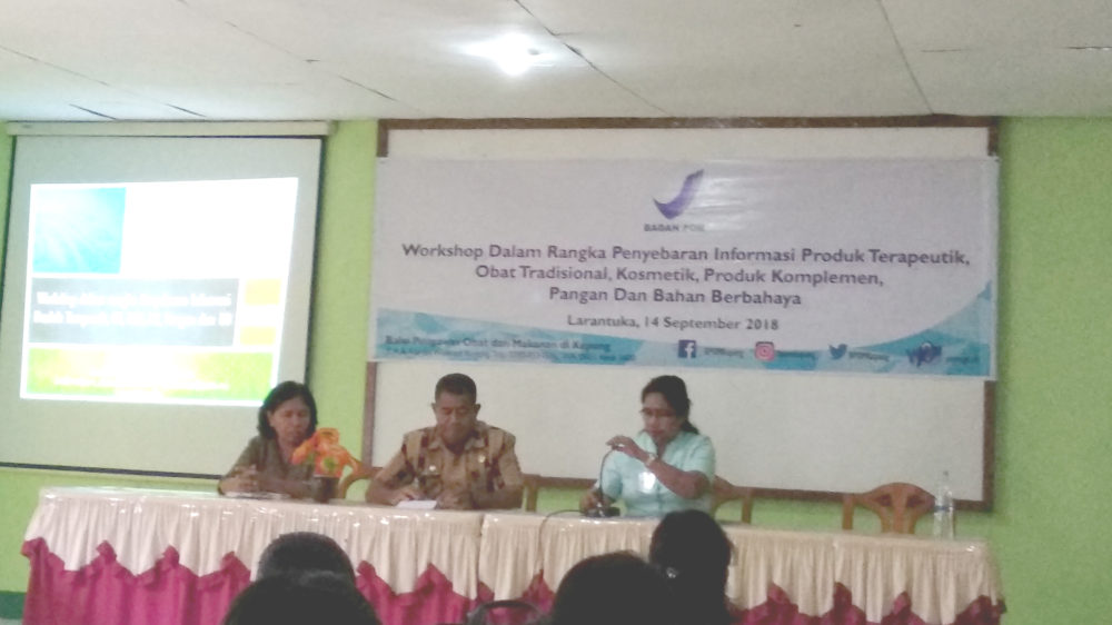 Jumat (14/09/18), BPOM Kupang yang beralamat di Jln R.A Kartini Walikota Kupang melakukan Kegiatan Sosialisasi Informasi Produk Pangan dan Kosmetik. Sosialisasi ini ditujukan untuk para pelaku usaha, pihak sekolah, Dinas Kesehatan, dan Puskesmas di Larantuka, Kabupaten Flores Timur.
