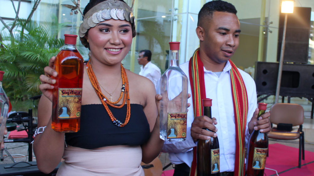 Sophia, minuman tradisional masyarakat NTT yang kadar alkoholnya mencapai 40 persen secara resmi diluncurkan oleh Universitas Nusa Cendana (Undana) Kupang yang berkolaborasi dengan Pemerintah Provinsi Nusa Tenggara Timur dan pihak swasta. Peluncuran Sophia yang risetnya dilaksanakan hampir selama 1 tahun ini digelar di UPT Laboratorium Riset Terpadu Biosain Undana, Rabu (19/6/2019).