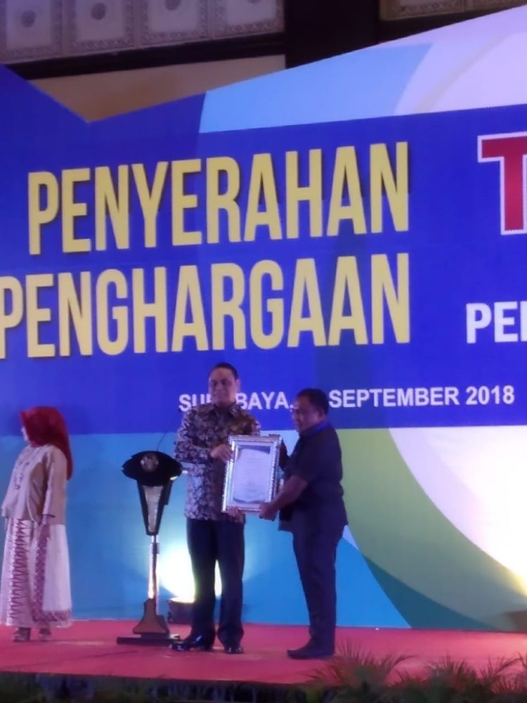 Menteri Pendayagunaan Aparatur Negara dan Reformasi Birokrasi (PANRB), Syafruddin memberikan penghargaan Top 99 Inovasi Pelayanan Publik 2018 di Surabaya, Rabu (19/09/18).